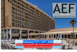 The Academy of Economics and Finance (AEF) conference continues to provide an opportunity for attendees to showcase their research, engage with fellow faculty, and learn about new trends in the world of economics and finance. Papers and abstracts exploring topics related to Economics, Finance, and Economics/Finance pedagogy will be considered for conference presentation. Whether you are already an AEF member or are searching for an academic society focused on the fields of Economics and Finance, please consider joining us this year.